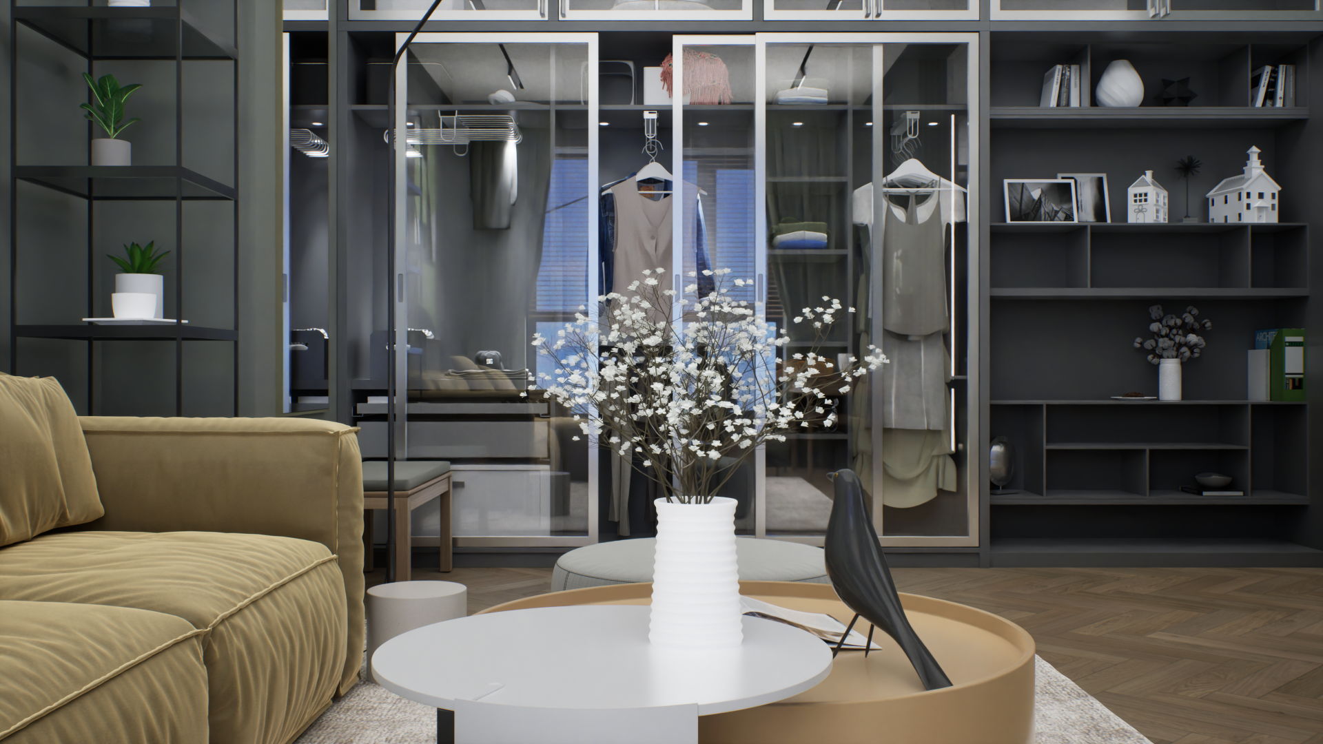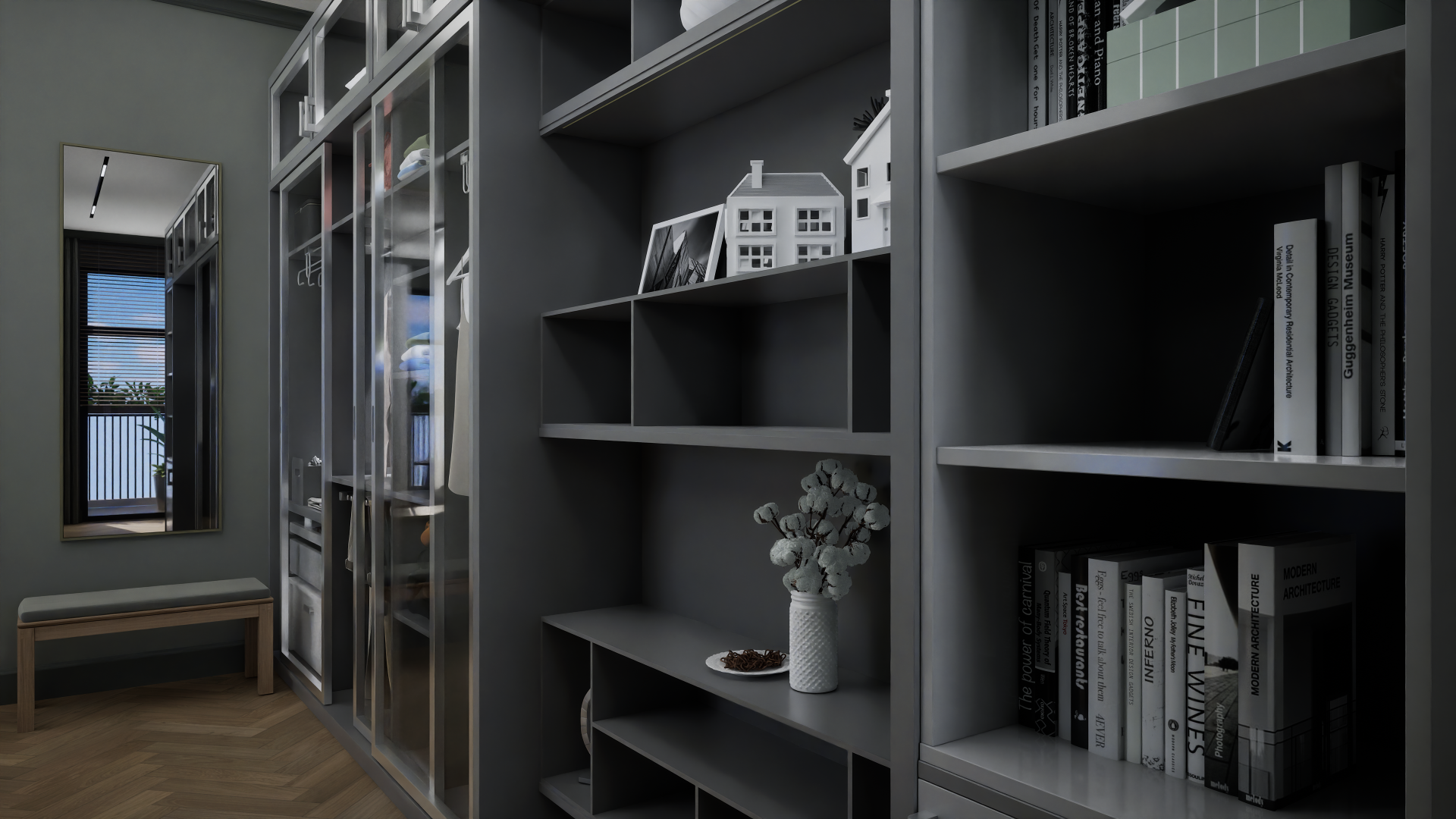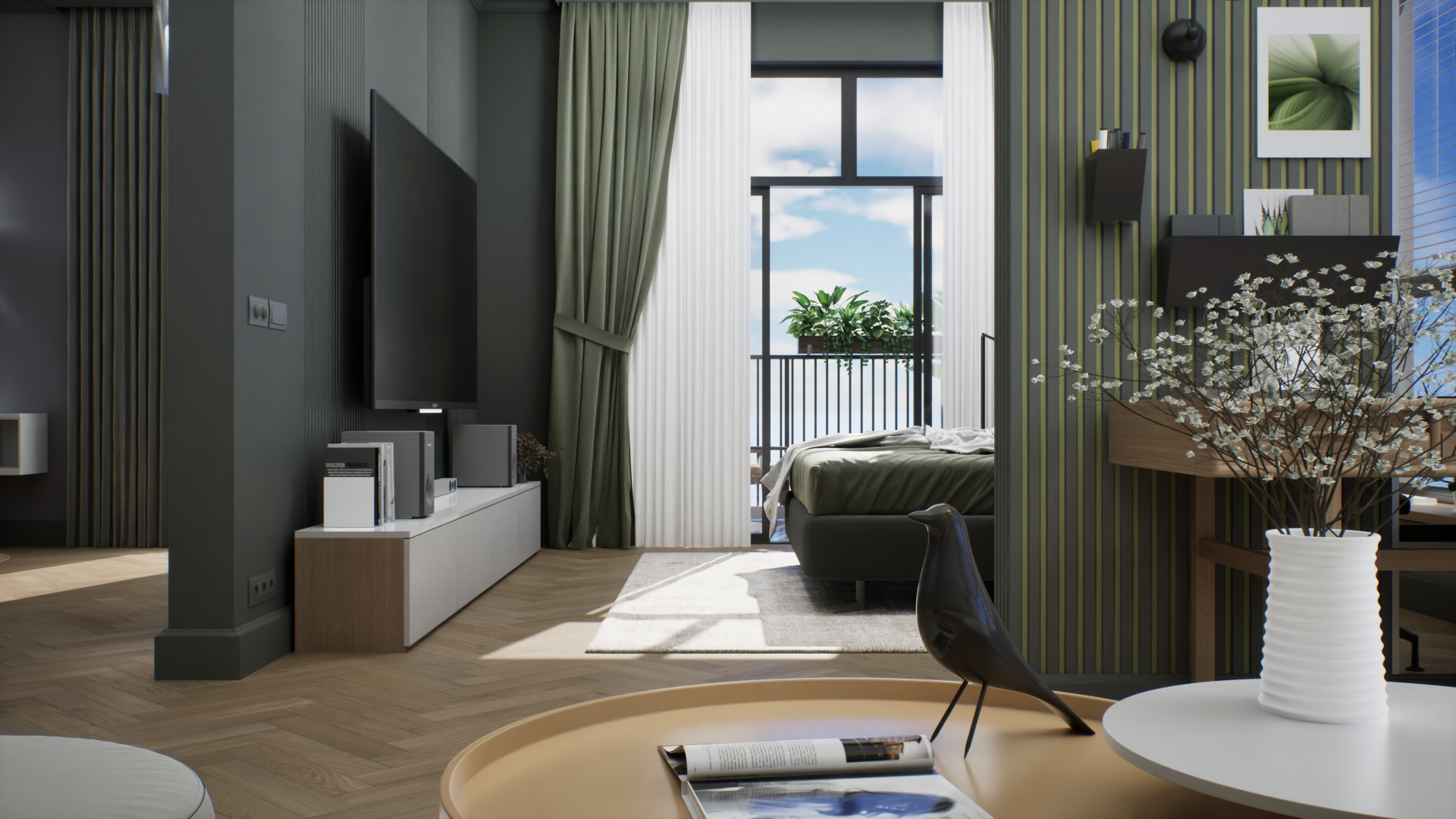 Помимо стильной спальни, квартира отличается продуманной планировкой и гармоничным сочетанием современных материалов и спокойных природных оттенков. Пространство организовано так, чтобы каждая зона была функциональной и комфортной — от рабочей области до зоны отдыха. Чистые линии, отсутствие лишних деталей и сбалансированная цветовая гамма делают эту квартиру идеальным местом для жизни.