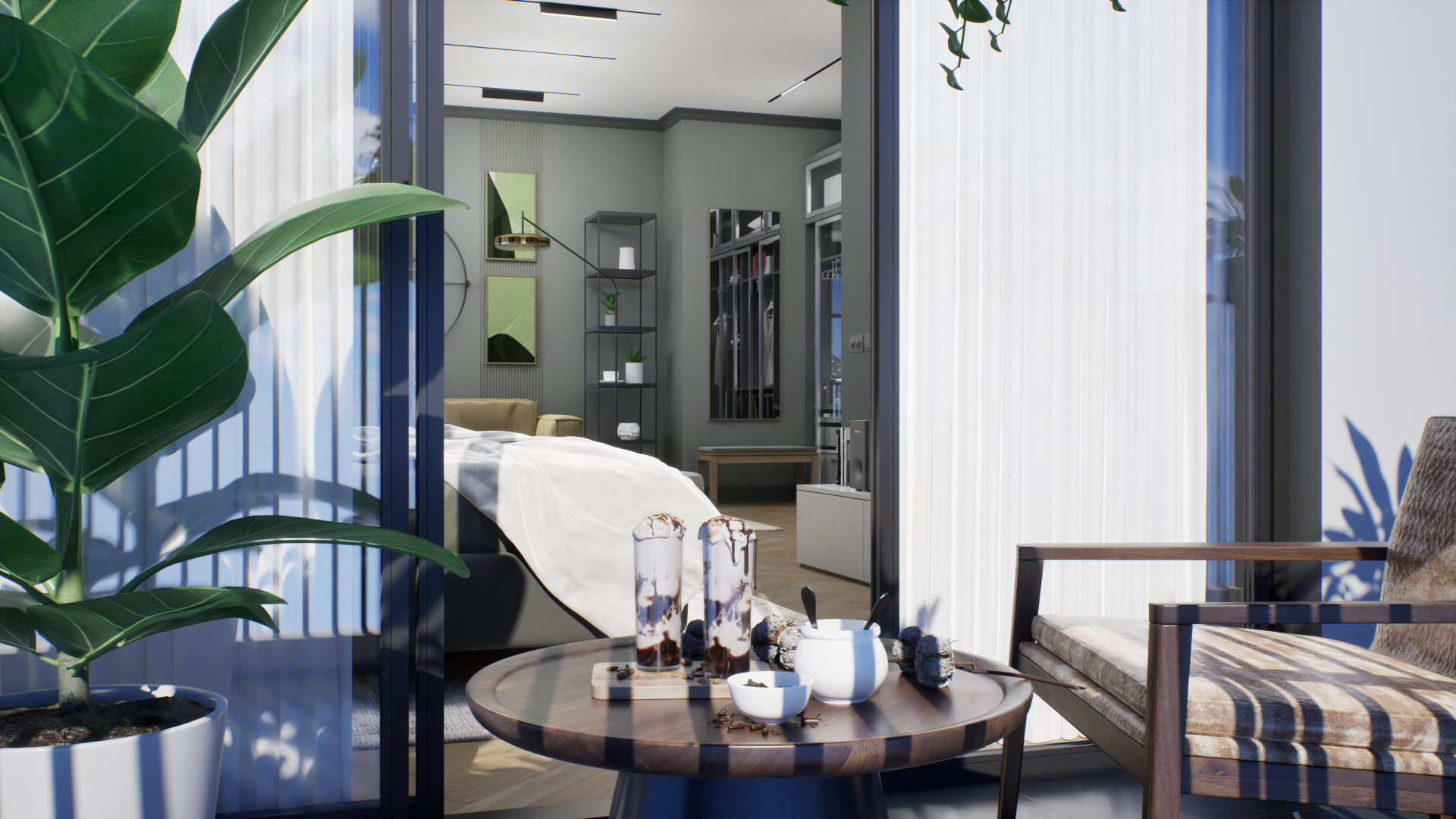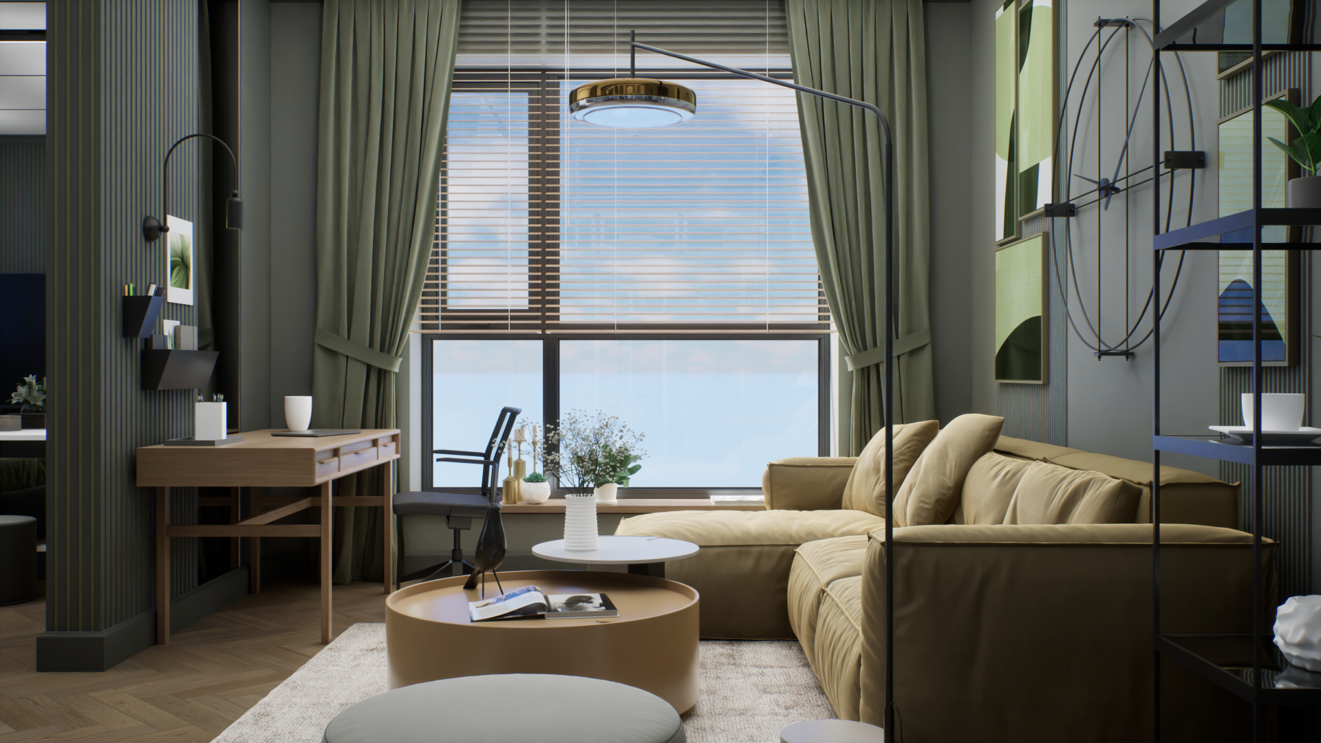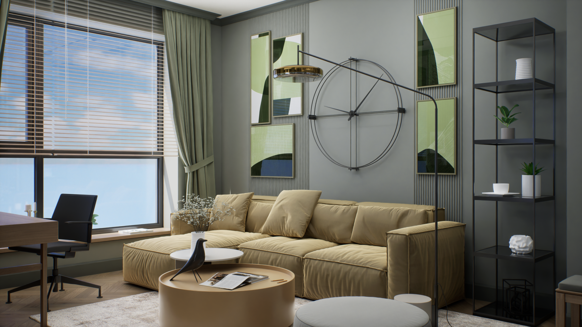 Помимо стильной спальни, квартира отличается продуманной планировкой и гармоничным сочетанием современных материалов и спокойных природных оттенков. Пространство организовано так, чтобы каждая зона была функциональной и комфортной — от рабочей области до зоны отдыха. Чистые линии, отсутствие лишних деталей и сбалансированная цветовая гамма делают эту квартиру идеальным местом для жизни.
